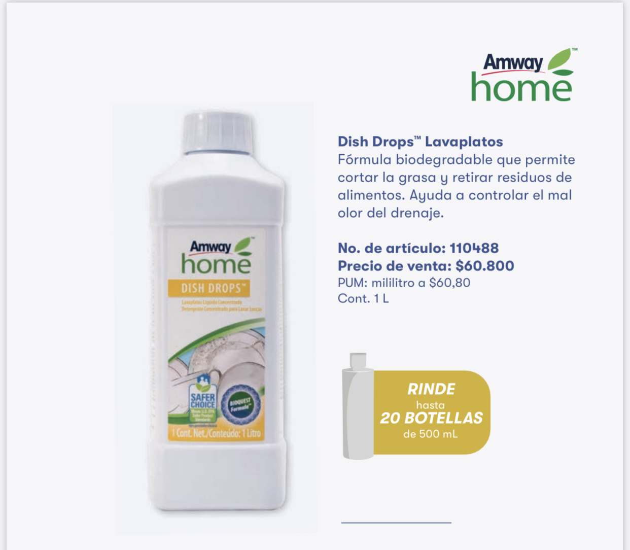 AR ¡INCREÍBLEMENTE RENDIDOR! Un hogar ecológico con vasos, ollas, vajillas y cubiertos relucientes también es posible gracias a la innovadora tecnología Bioquest FormulaTM de la línea de lavavajillas Amway HomeTM.